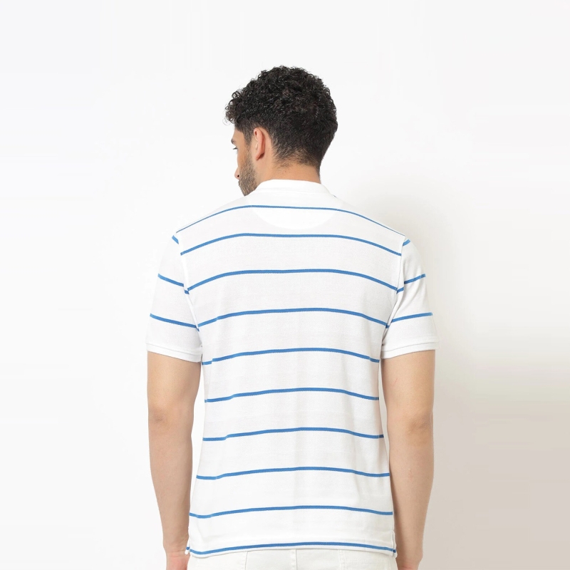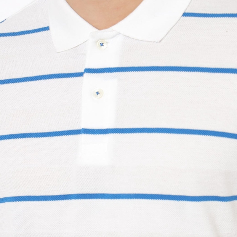للرجال بياقة بولو مخططة بياقة قطنية خالصة أبيض وأزرق