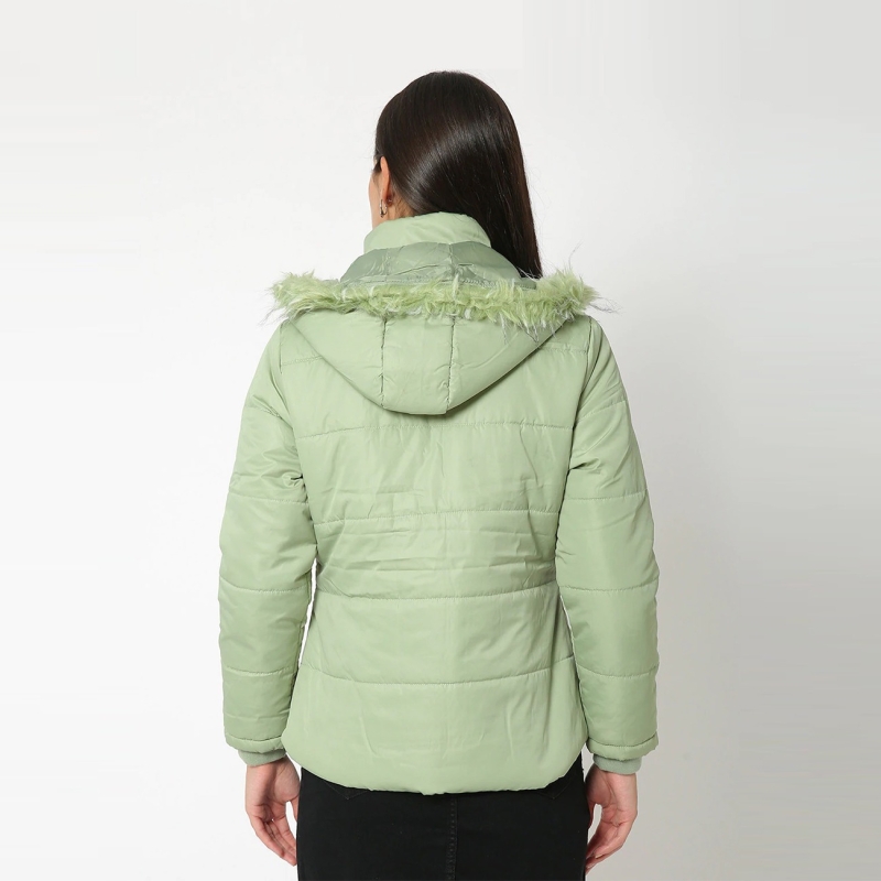 جاكيت مبطن بغطاء رأس مبطن بالفرو الصناعي