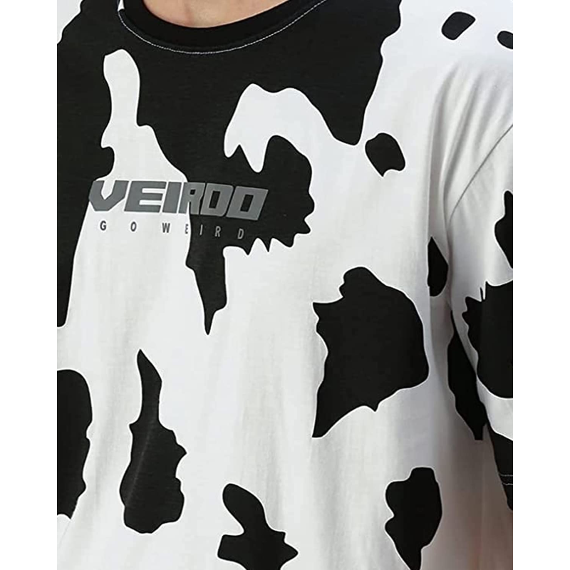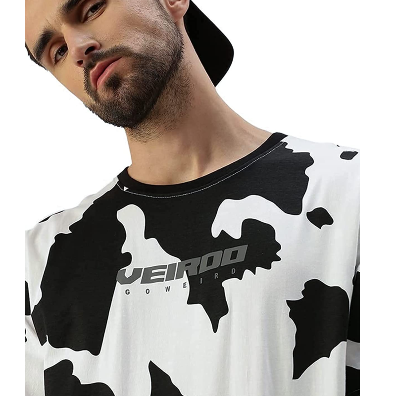 Veirdo 100% Cotton Oversize Drop Shoulder Loose Fit Round Neck Half Sleeve Animal Printed T-Shirt fo