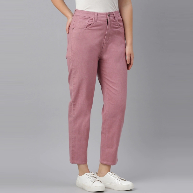المرأة الوردي استرخاء تناسب عالية الارتفاع قابلة للتمدد المحاصيل الجينز
