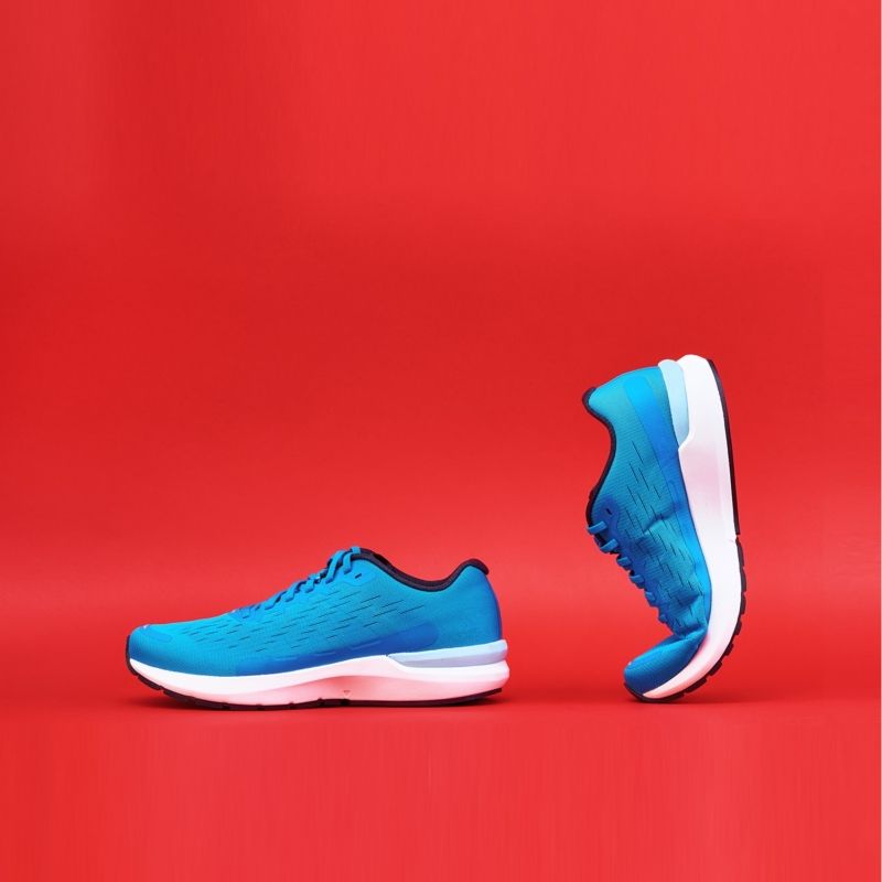 A pair of Blue walking shoes, has regular Styling, lace-ups detail