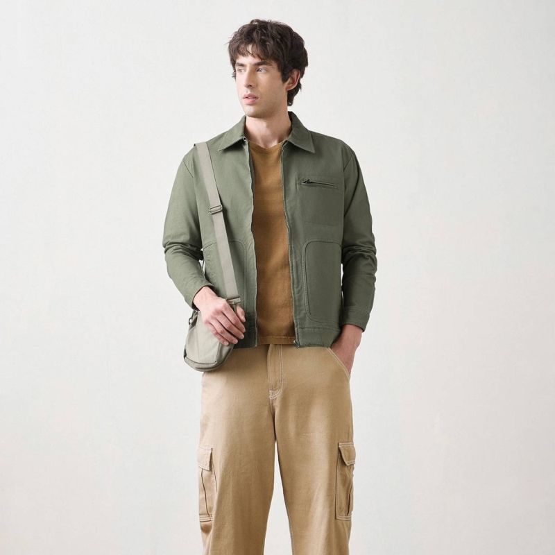 Men Zip-Front High-Neck Jacket