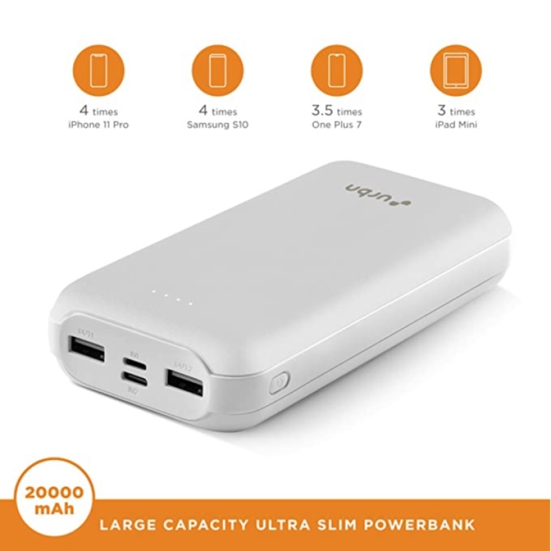 URBN 20000 mAh Lithium Polymer Power Bank UPR204 with 12 Watt Fast Charging (White)