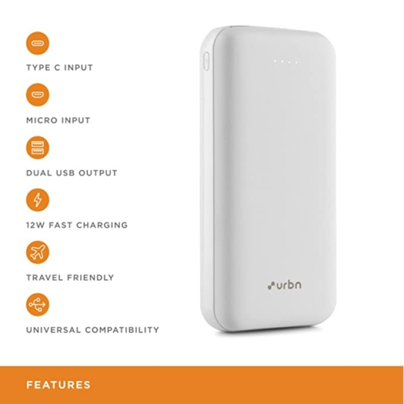 This powerful Power bank from the house of URBN helps you to rule out of the worry of your phone running out of charge. With 20000mAH power, it can charge your phone fast and safely. With matte finish body and light weight, this power bank becomes a stylish accessory and is comfortable to carry around with you everywhere