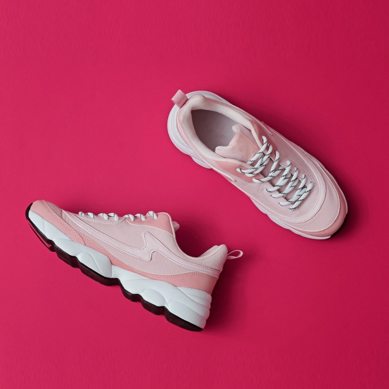 A pair of Pink walking shoes, has regular Styling, lace-ups detail