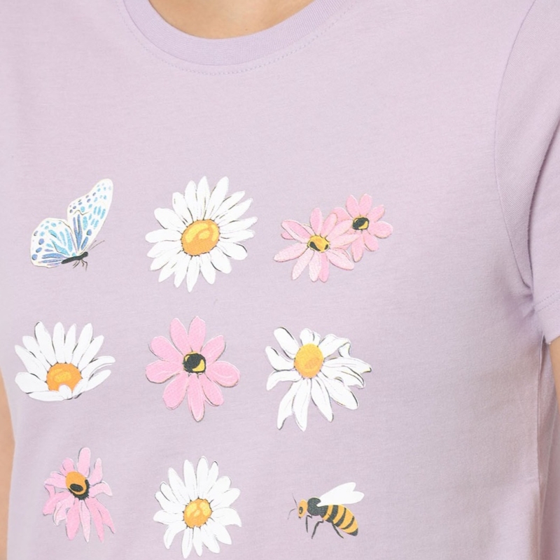 المرأة طباعة الأزهار سليم صالح الطاقم الرقبة تي شيرت