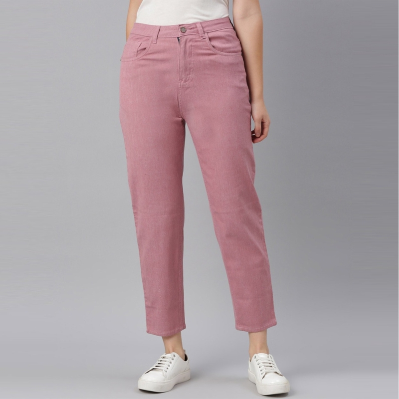 المرأة الوردي استرخاء تناسب عالية الارتفاع قابلة للتمدد المحاصيل الجينز