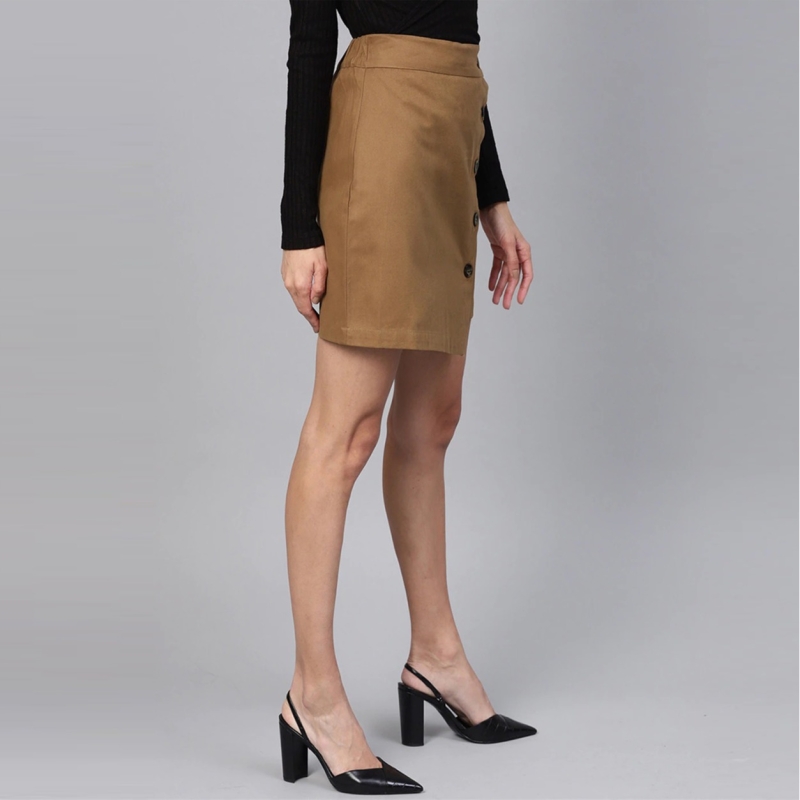 Brown Straight Pure Cotton Skirt