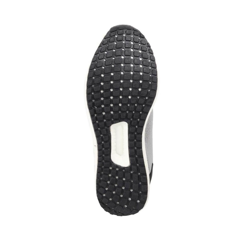 A pair of grey walking shoes, has regular Styling, lace-ups detail