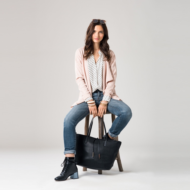 Black and white polka dot print Casual shirt, has a spread collar, button placket, long regular sleeves, curved hem